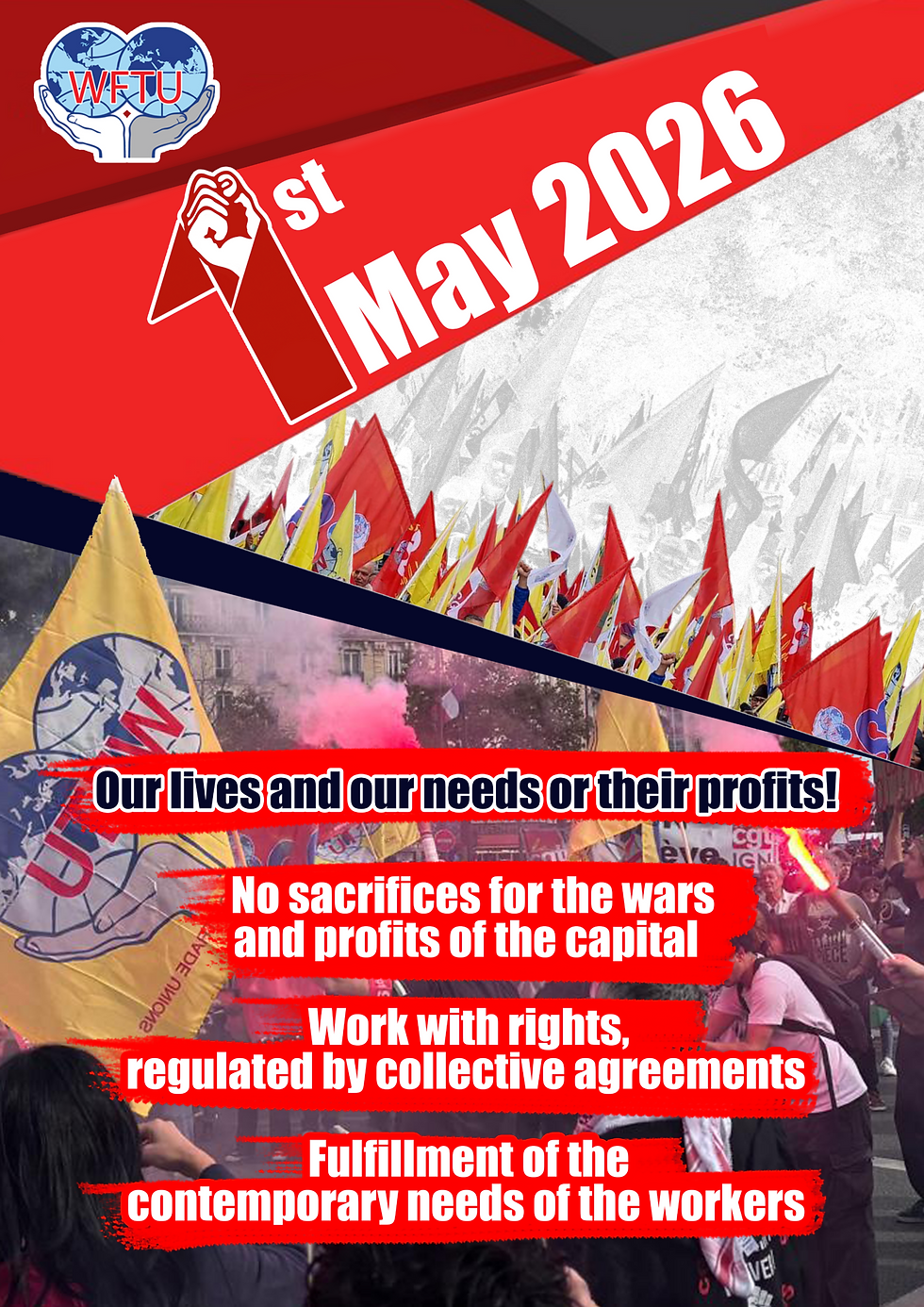 The WFTU calls on trade unions to reject compromise and submission. To strengthen their struggles and organize resistance in every workplace, every sector, and every country, against the barbarity of the system of profit and war.